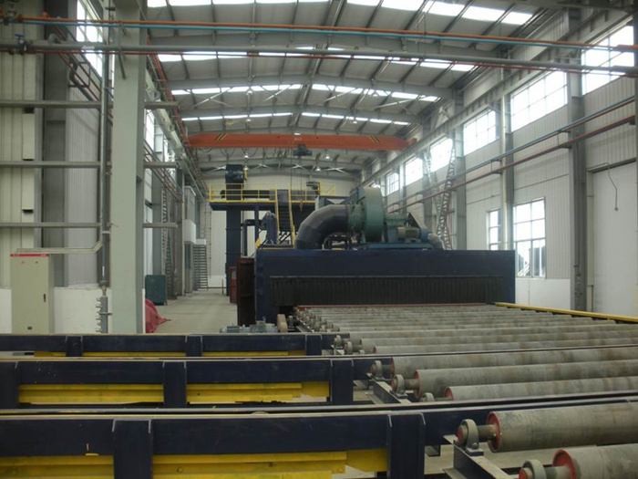 本流水線預處理鋼板規格范圍為寬度≤4000mm,長度≤18000mm,厚度6-50mm。本流水線除銹質量等級符合GB8923-88  Sa2.5,噴漆漆膜厚度15-25,表面粗糙度40-70,預處理速度約為4m/min。