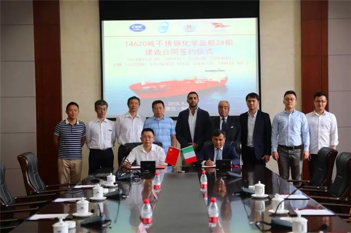 近日,武船集團(tuán)海工院為意大利Marnavi船東打造的“14620DWT不銹鋼化學(xué)品船”在武船總部舉行了2#船建造合同簽約儀式。意大利船東代表、武船集團(tuán)代表、海工院代表參加簽約儀式。