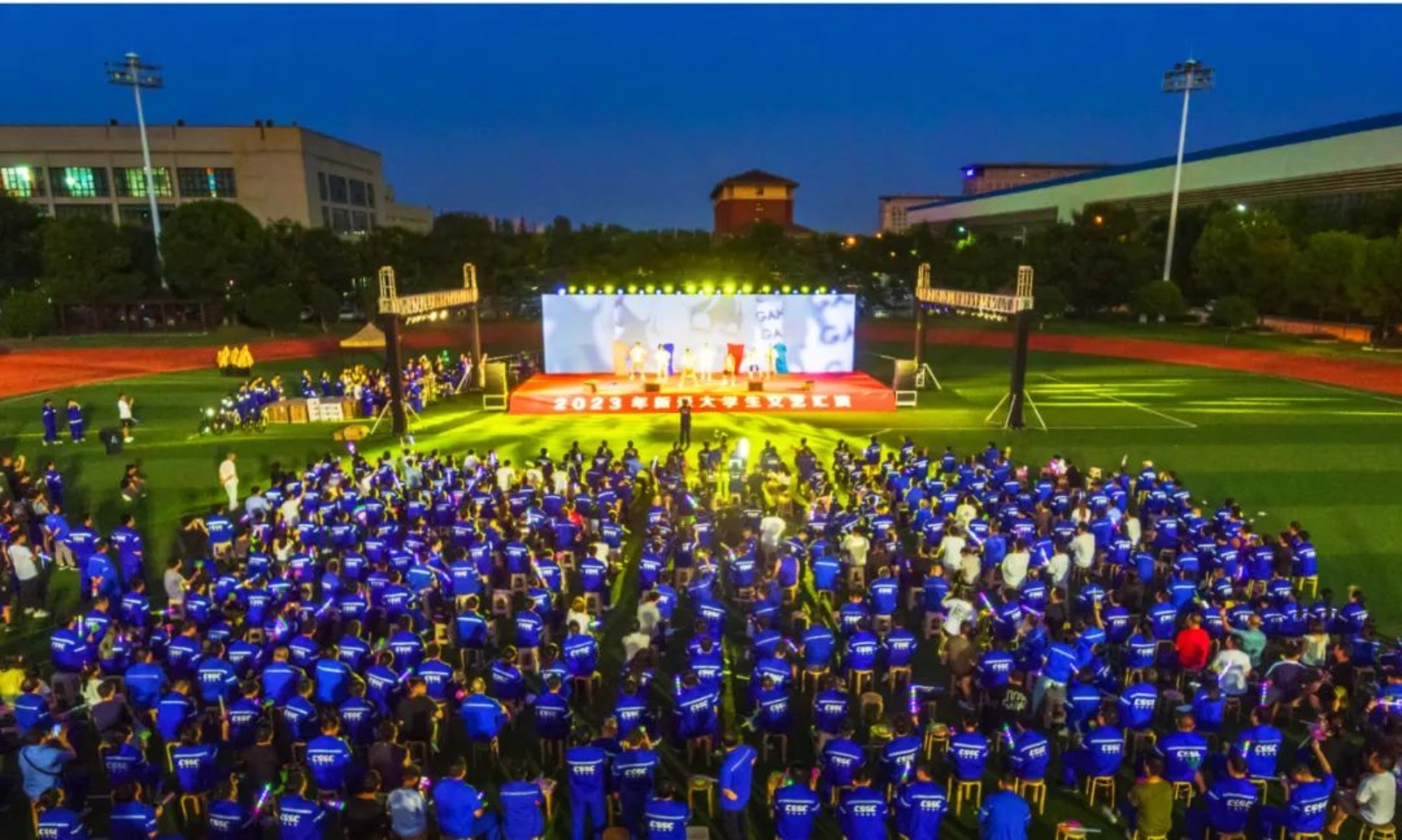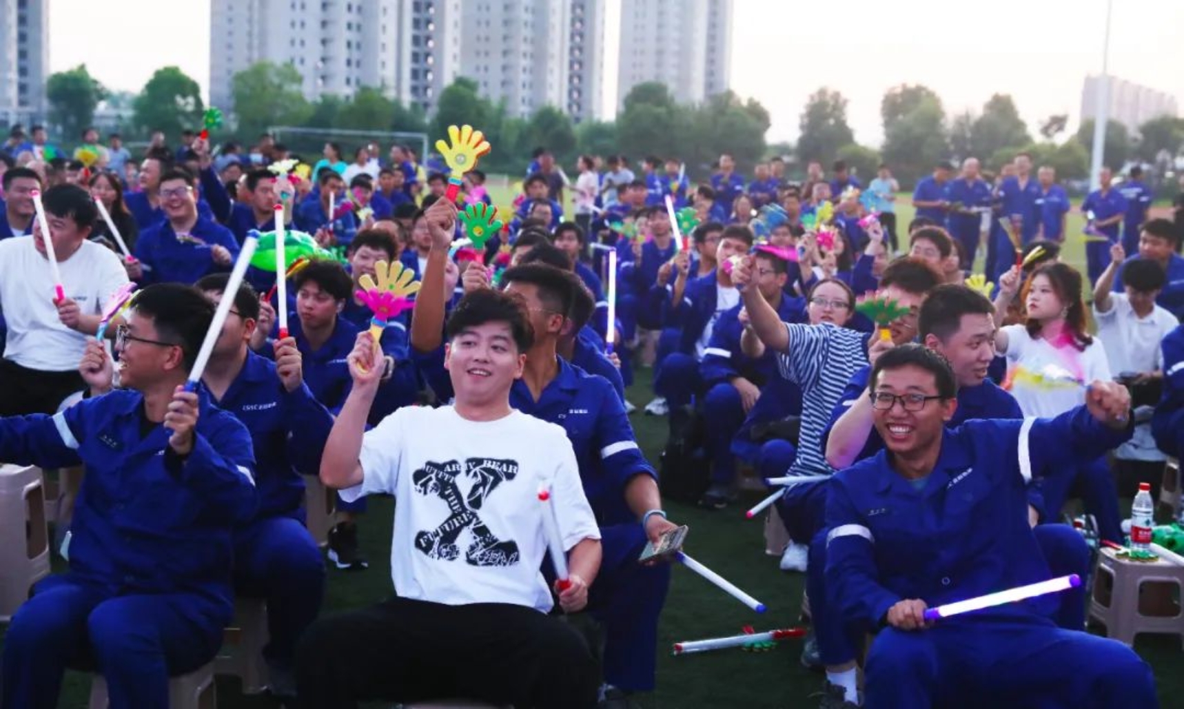 動青春,承夢想。831日晚,中國船舶集團武昌造船2023年新進大學生文藝匯演在雙柳廠區足球場上圓滿舉行,現場氣氛熱烈,歡聲笑語不斷。公司領導姜濤、梁師清、陳仲明、左照海與現場近1000名員工一同觀看了演出,演出還通過武昌造船視頻號進行了現場直播,觀看人數超過萬人。