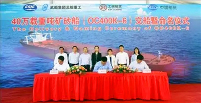 9月27日,武船集團(tuán)北船重工為工銀金融租賃建造的新型40萬噸礦砂船“ORE DALIAN(鐵礦大連)”號在青島命名交付,該輪將隨后離港駛向巴西,正式肩負(fù)起保障我國鐵礦石進(jìn)口的光榮使命。這也是北船重工今年交付的第4艘同型船舶。
