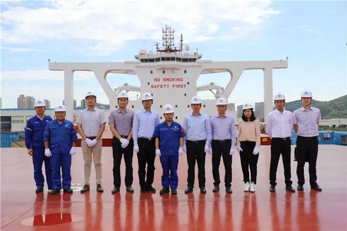 韓兵向黃志強一行介紹了武船集團北船重工的基本情況及主要產品,并邀客人共同觀看了公司宣傳片和40萬噸專題片。交流座談中,韓兵首先感謝了中信保過去幾年在項目承保上對公司的支持,使公司能夠更加放心地開拓國際市場;為進一步加強雙方合作,韓兵提出建議,希望中信保在一些細分的特種船和海工市場上給予公司政策扶持,助力公司市場開拓。會后,韓兵陪同中信保來訪領導參觀了40萬噸6號船。