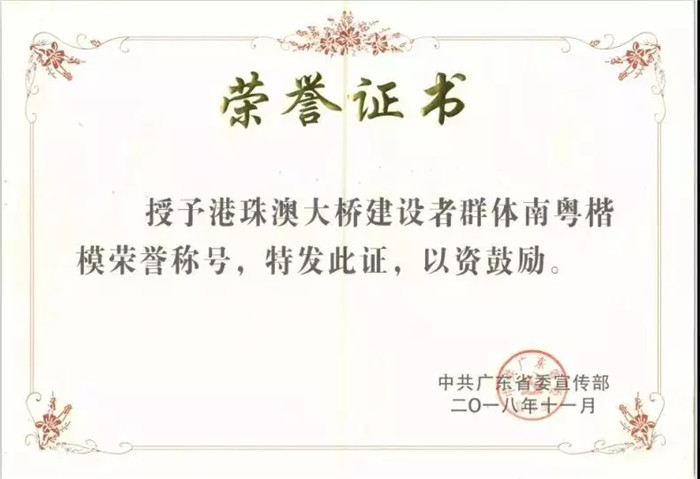 11月3日,廣東省委宣傳部授予港珠澳大橋建設(shè)者群體 “南粵楷模”稱號。廣東省委常委、宣傳部部長傅華出席活動,并會見了港珠澳大橋建設(shè)者代表。
