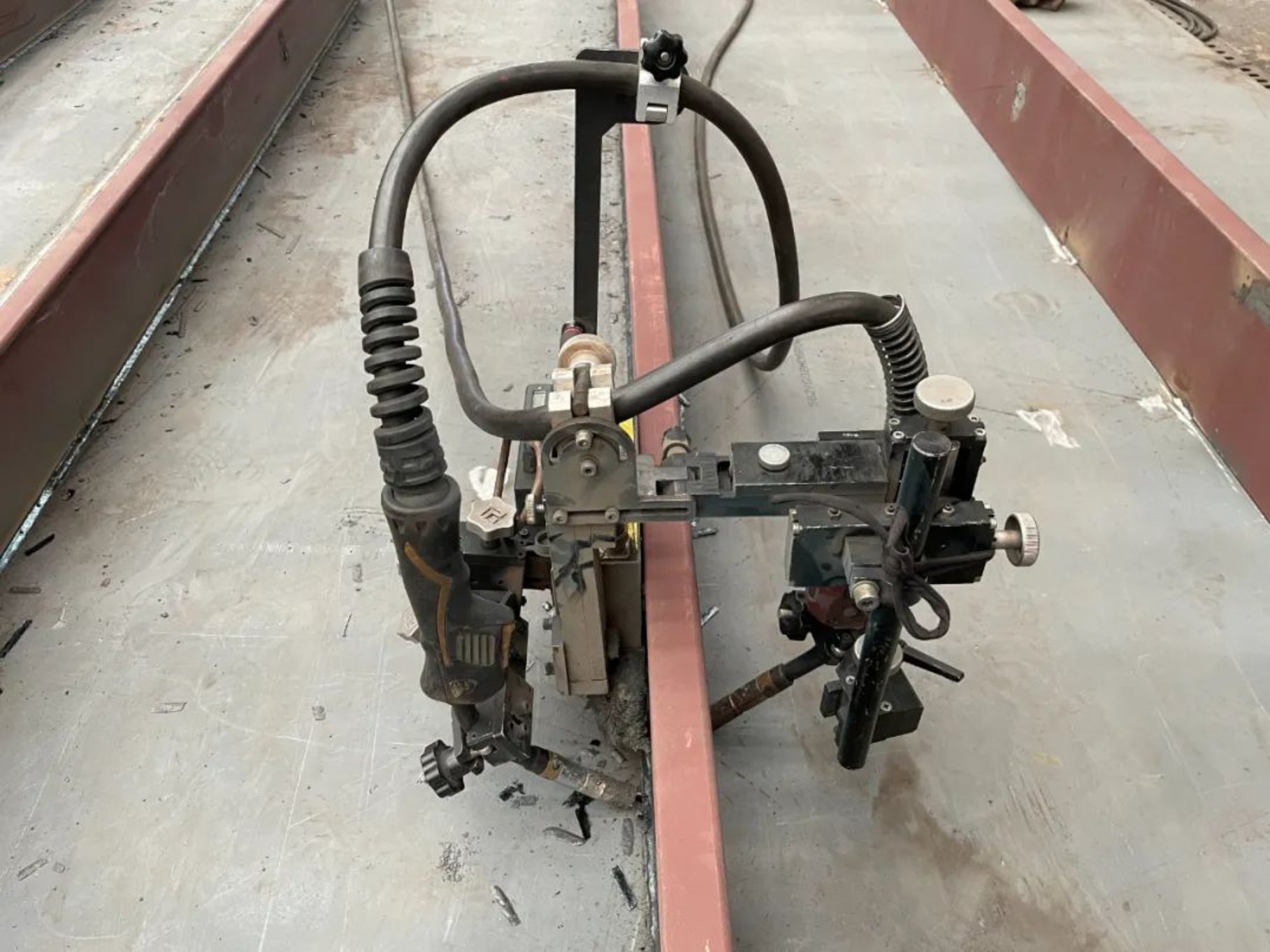 在甲板型材結構上的開孔,會影響角焊小車無法連續施焊,需事后人工進行修補。經過集思廣益,大家對角焊小車設備進行了簡易改裝,改變其行走限位輪的高度,保證了角焊小車在行進過程中的連續性,省去了后期人工補焊、打磨等工時的消耗。