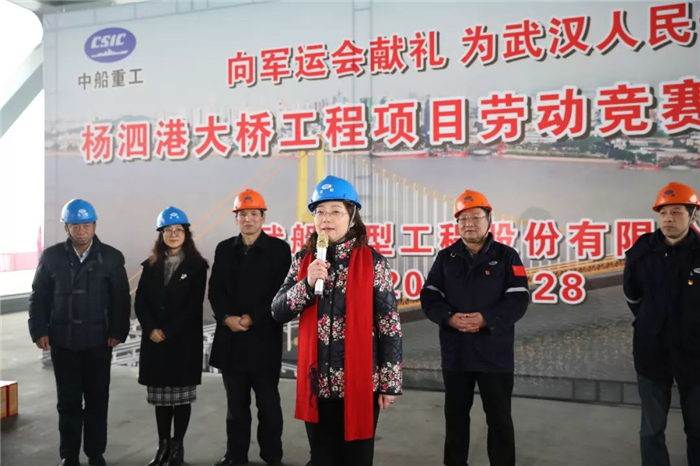 王芳強調,最近兩年,市總工會組織百萬職工,在重點項目、重點領域建設中,全面深入開展勞動競賽,“創業創新創優,聚力拼搏趕超”、“當好主人翁,建功新時代”等主題深入人心,為武漢市高質量發展做出了重要貢獻。這次聯合武船打響了武漢市2019年“當好主人翁,建功新時代”勞動競賽活動第一槍,希望通過活動,加快武漢市重點工程建設的推進,為第七屆世界軍人運動會提供有力保障。