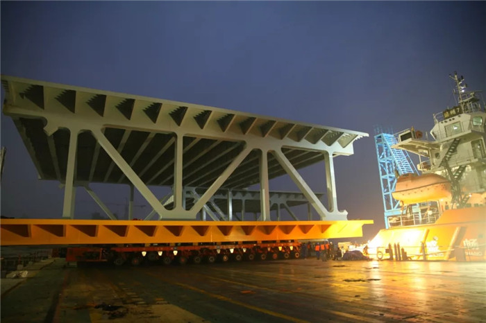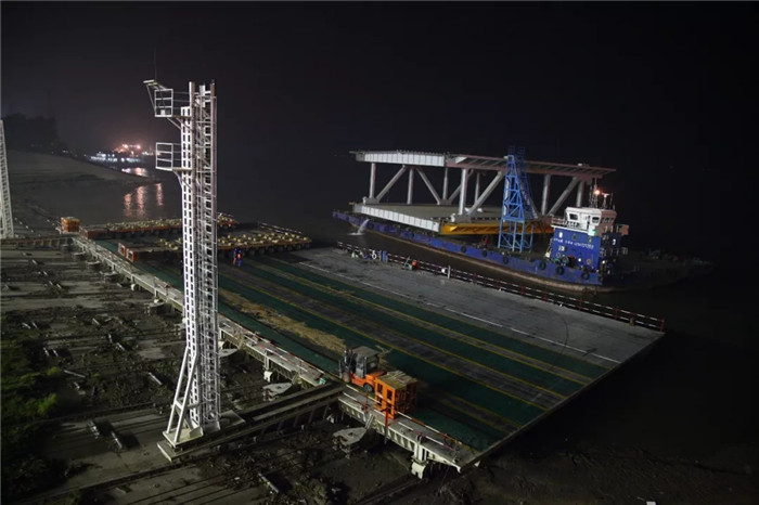 吊裝節點就是命令,誠信履約就是天職,大家精神振奮、斗志高昂,沖進夜色之中,繼續投入到下一分段的發運之中。
