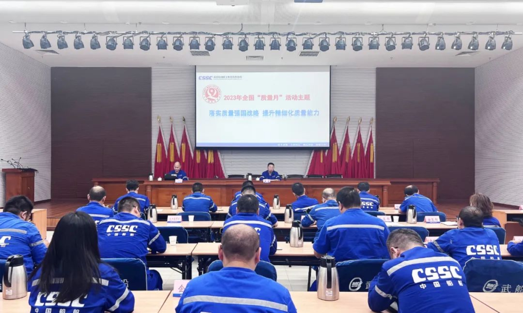 9月1日上午,中國船舶集團武昌造船組織召開2023年全國質量月活動動員大會。公司黨委委員、副總經理、總工程師唐瀅,各單位質量分管領導,質量管理員近50余人參加會議,正式拉開了武昌造船質量月活動序幕。