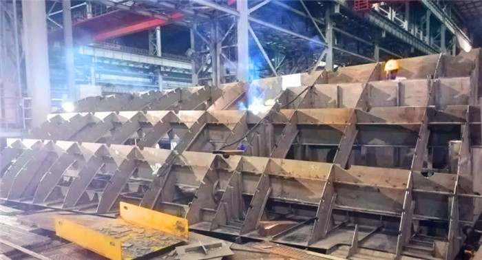 該首制分段為單殼體底部分段,結構形式與往期產品相比變化較大,且工藝復雜。另外,本次施工屬異地作戰,無論在資源調配還是與相關方的溝通協調等方面都存在不小的難度,而這些都是擺在項目部面前的巨大考驗。為應對上述工作難題,項目部高度重視,決心不惜一切代價也要按期、保質完成生產任務。在項目部總指揮凌偉、副總指揮李強的統一領導下,項目部迅速加大了人力、物力及各項設備設施的投入力度,通過不斷優化細化生產組織,制定科學有效的日生產計劃并狠抓計劃的落實,不斷加強對現場的溝通和協調等舉措,有效解決了工作中存在的諸多困難,打通了生產瓶頸,達到了“日事日畢、日清日高”的效果。