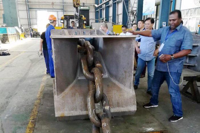 滑道鎖止器核心機構制造過程采用了先進的模塊化組合焊接方式和熱變形綜合防控工藝。施工人員將滑道鎖止器核心――“雙棘輪鎖止機構”的零部件作為整體模塊機加工,再將加工后的鎖止機構模塊整體焊接到滑道鎖止器主體結構上,焊接過程采用支、壓、拉、頂等剛性約束和多點位對稱焊接方式構成的熱變形綜合防控工藝,最大限度控制了焊接熱變形量,組焊完成的鎖止機構模塊尺寸精度達到亞毫米級,優于初定的圖紙技術要求。“這么高的焊接質量和制造精度能夠讓新型滑道鎖止器發揮出全部能力,讓超大型FPSO在風浪中持續可靠運行20年。”重慶海工機電設備有限公司代表贊揚到,“武船造真是了不起!”29日的實測試驗過程中,十多米長的錨鏈連續反復順暢通過了雙棘輪鎖止機構,充分驗證了新型滑道鎖止器的功能性。