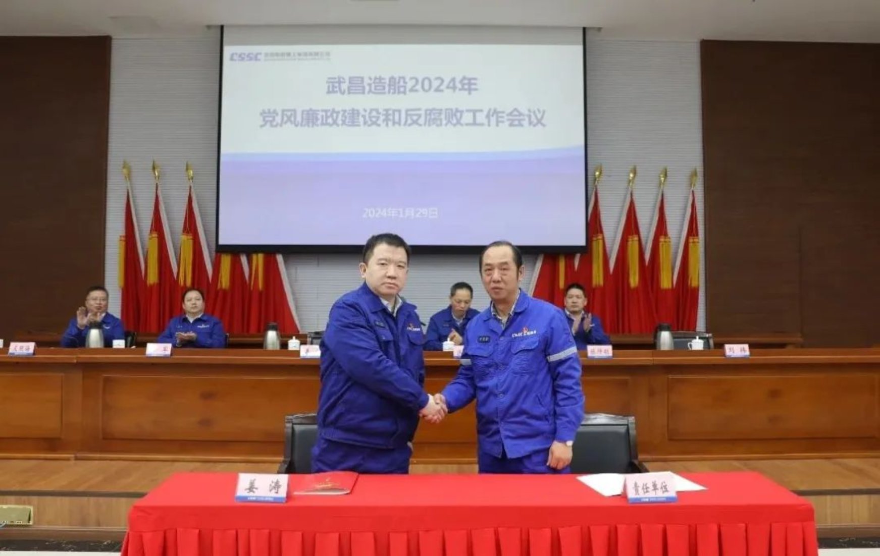 1月29日,中國(guó)船舶集團(tuán)武昌造船召開(kāi)2024年黨風(fēng)廉政建設(shè)和反腐敗工作會(huì)議。武昌造船黨委書記、董事長(zhǎng)姜濤出席會(huì)議并講話。黨委副書記、總經(jīng)理梁師清主持會(huì)議,并傳達(dá)了二十屆中央紀(jì)委三次全會(huì)精神和集團(tuán)公司2024年黨風(fēng)廉政建設(shè)和反腐敗工作會(huì)議暨警示教育大會(huì)精神。黨委委員、紀(jì)委書記左照海作了題為《忠誠(chéng)履職 擔(dān)當(dāng)作為 以紀(jì)檢工作新質(zhì)效助推價(jià)值創(chuàng)造 為公司改革深化提升 高質(zhì)量發(fā)展提供堅(jiān)強(qiáng)保障》的工作報(bào)告。公司領(lǐng)導(dǎo)田軍、陳仲明、劉祎,公司助理級(jí)領(lǐng)導(dǎo)、公司紀(jì)委委員,中層副職及以上管理人員參加會(huì)議。