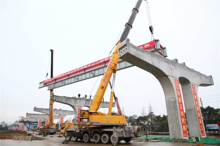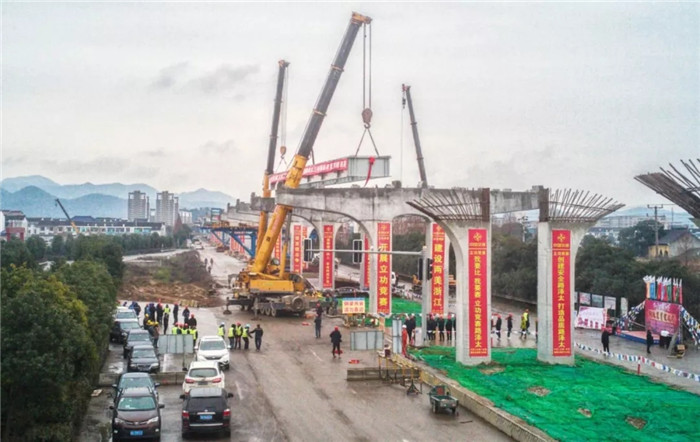 臺(tái)州路澤太高架TJ03標(biāo)鋼板梁首片梁架設(shè)成功