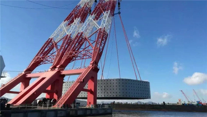 寧波舟山港主通道內(nèi)層防撞鋼套箱吊箱完成