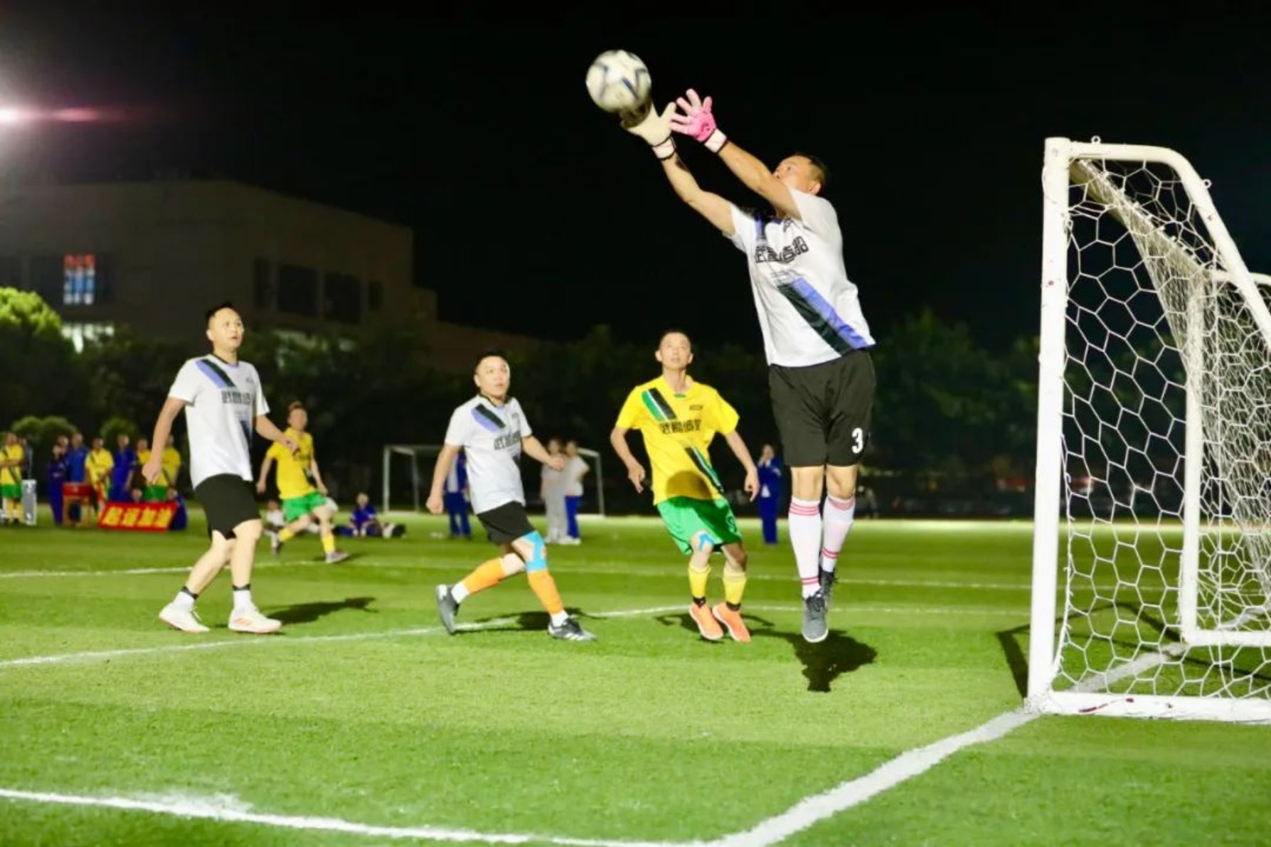 晚上七點,隨著一聲哨響,起運工程隊和物資供應隊分別派出自己的最強陣容開始了激烈角逐。比賽伊始,雙方隊員都處于試探性階段,隨后,隊員們漸入佳境,比賽越來越激烈,場下時時爆發出喝彩與掌聲。隊員們嫻熟地傳著球,動作連貫相合默契。
