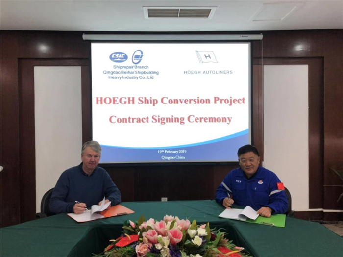 2月19日,武船集團(tuán)北船重工副總經(jīng)理、修船分廠廠長劉玉東和挪威禮諾航運(yùn)公司新造和改裝負(fù)責(zé)人JAN RUNE MORKEN先生在修船分廠簽署HOEGH 2019年改裝合同。這是北船重工今年首次簽署的改裝工程新訂單,為今年修船工作取得開門紅。
