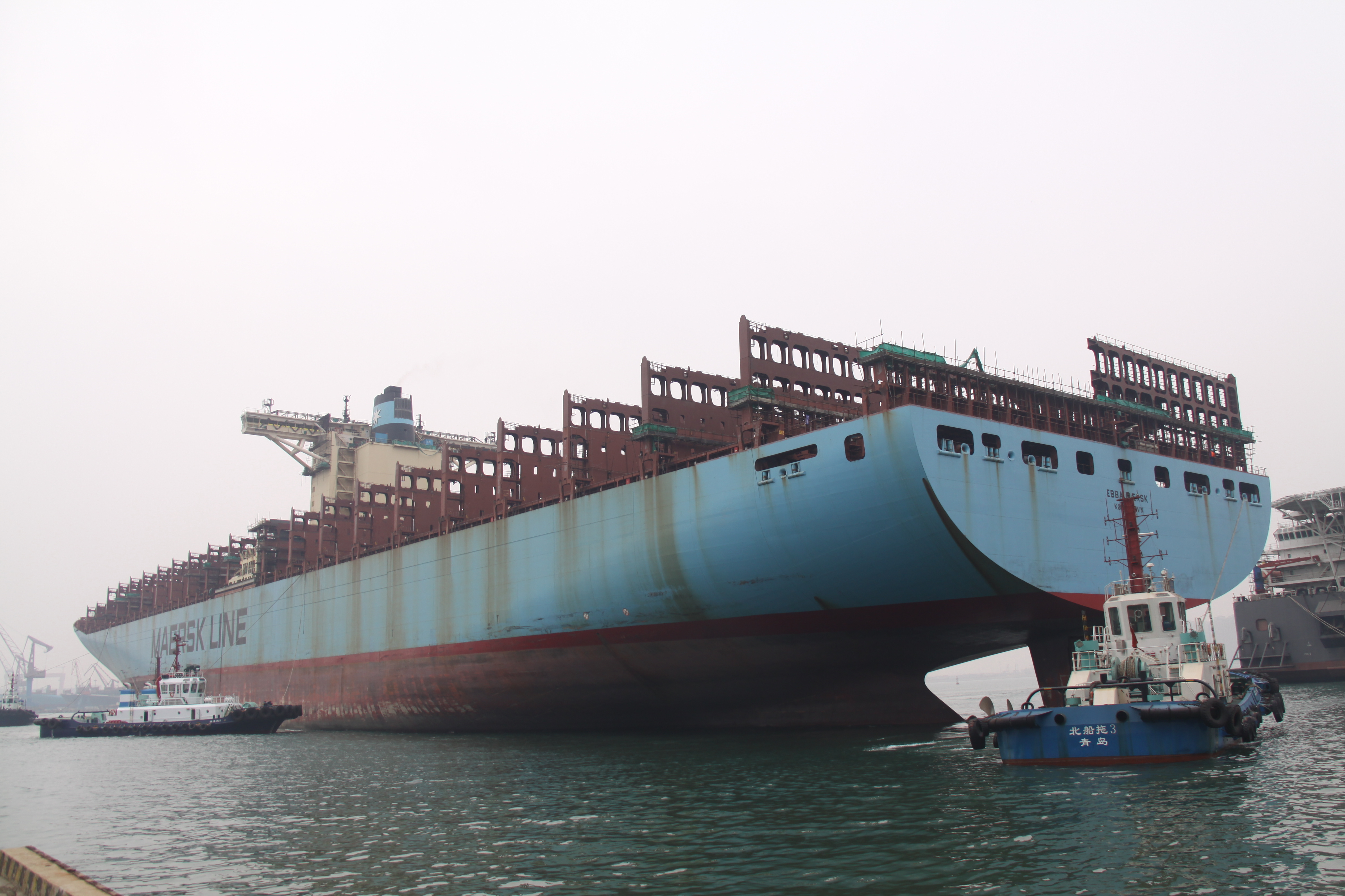 青島武船又一艘馬士基集裝箱改裝項目出塢